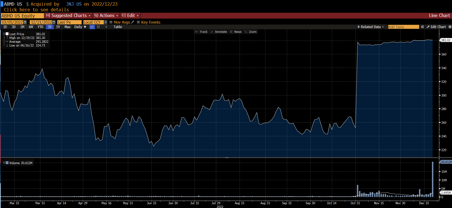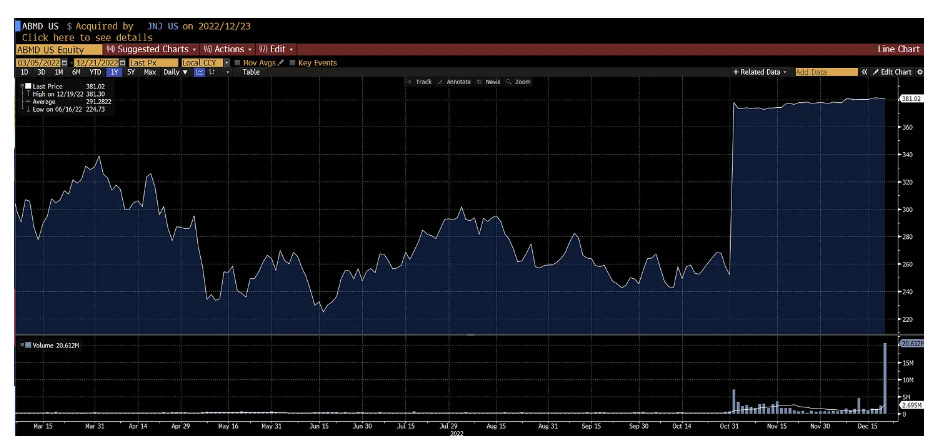 Anyway, I’m going to do this whole article as a mini-case study from a recent CVR, the JNJ acquisition of ABMD. I think that deal shows both the advantages and risks of CVRs, and analyzing it will help make the points I want to make better than I could by talking in the abstract.