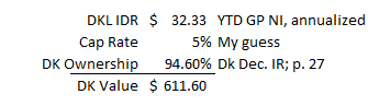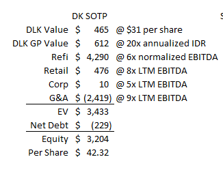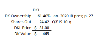 DKL currently trades for ~$31/share. DK owns ~15m shares, so DK's DKL ownership stake is worth ~$465m.