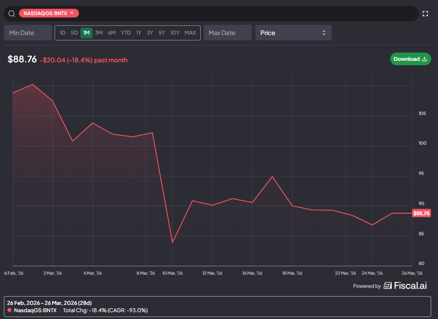 I’m not the only one who thought this was strange; BNTX is down ~20% over the past month, with the majority of the drop coming as the market reacted negatively to the management surprise.