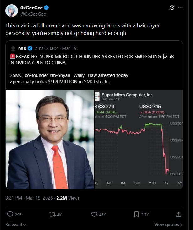 You’re probably not grinding hard enough (SMCI’s new compliance officer)