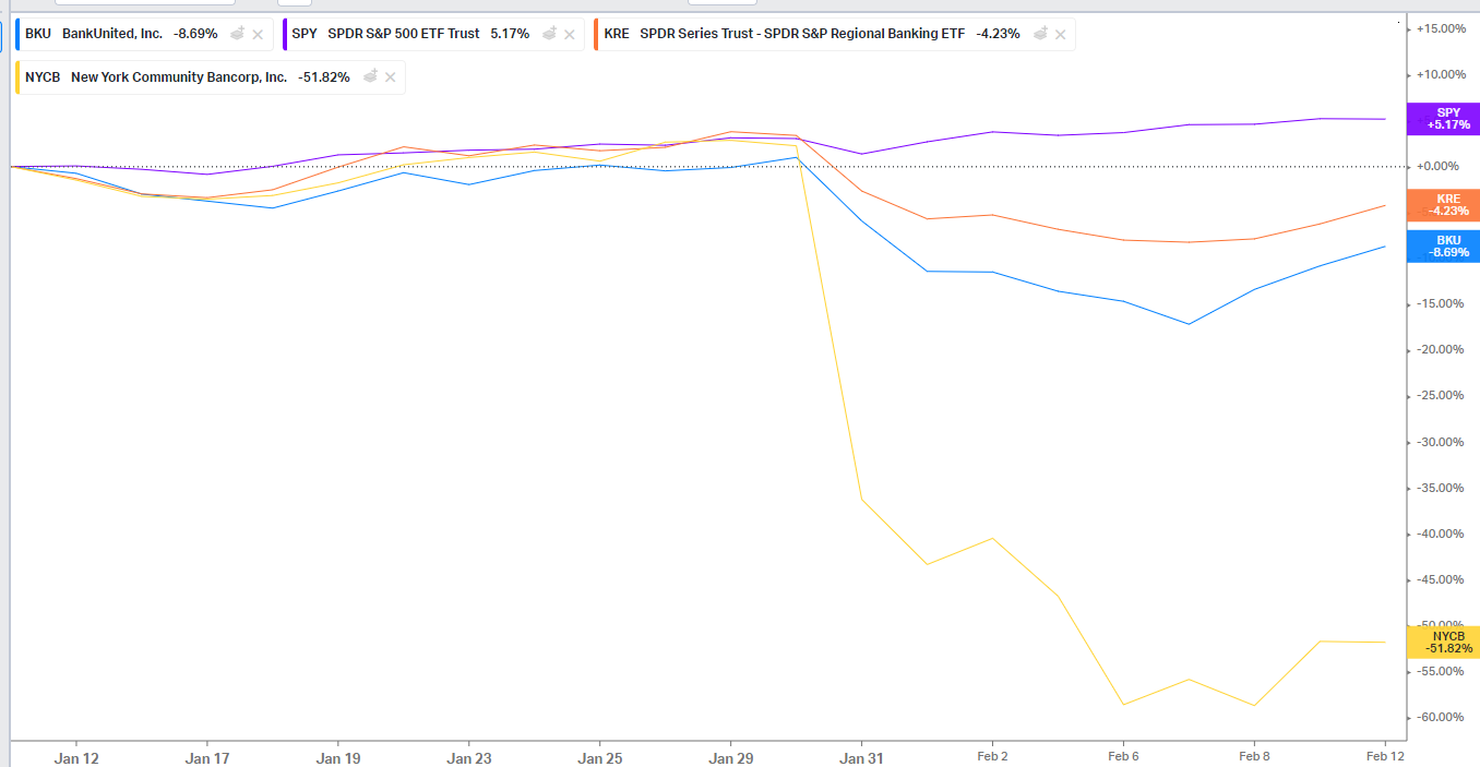 In terms of banks, I think the most interesting opportunities are things that have been knocked down by the NYCB sell off. The KRE is down ~5% since NYCB reported, and many banks are down even more. NYCB is one of the last banks to report, so you’re seeing banks that had already reported numbers and asset trends getting their stock smacked by a pretty large amount on fears that they have NYCB like exposure even though we already know their loan trends and many don’t have exposure anything close to like NYCB!