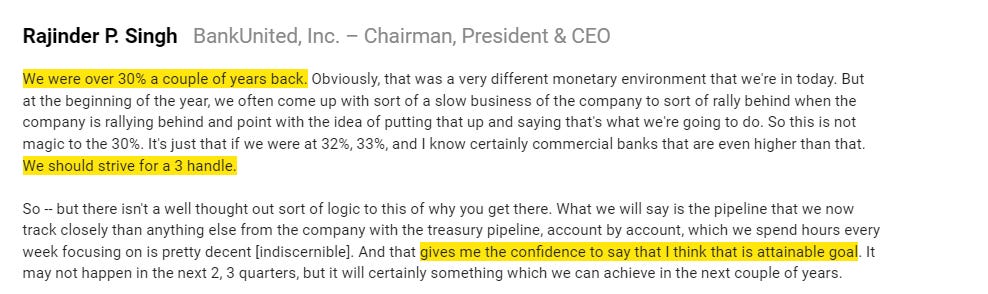 What I’m trying to get to is this: if you were just looking at a quantitative screen, it’d be pretty obvious BKU shouldn’t trade for under book value and it’s too cheap…. but they are trading for under book value, and that cheapness is something that management should be taking advantage of. Instead, the company is explicitly focused on growing their balance sheet and specifically their loan book.