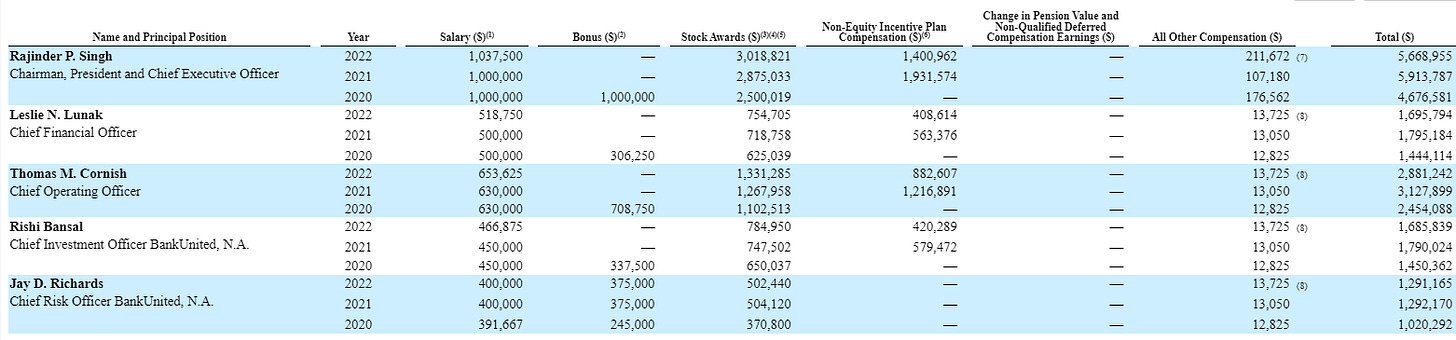There’s no such thing as a perfect compensation package. In all honesty, BKU’s comp package is probably right in the middle / average versus other banks. So I am picking on them a little.
