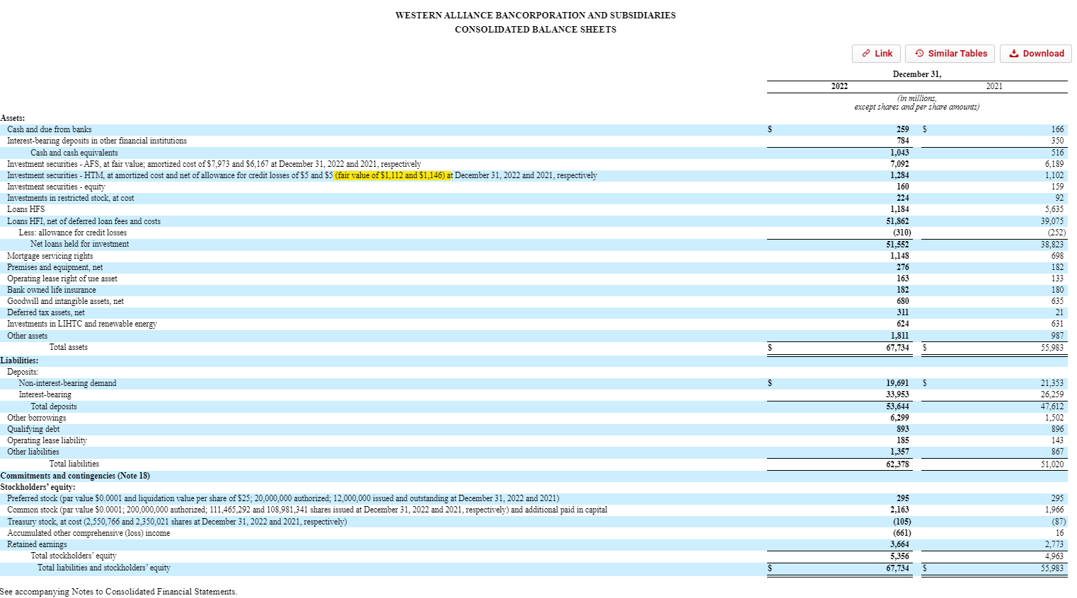 As of last night’s close (March 21), WAL is trading for ~$33.60/share. Tangible book at the end of 2022 was $40.25/share, and the company earned ~$9.70/share in 2022. So, at current prices, you’re buying them for less than tangible book value and under 4x LTM earnings. Not bad!