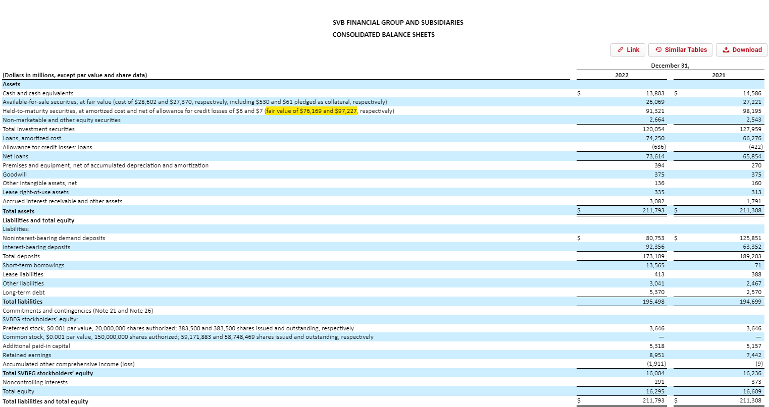 PS- I guess just one more thing while we’re here. It’s easy to dunk on SIVB (and FRC). They lost a ton of money in treasuries and they used an accounting fiction that let them hold the treasuries at cost to avoid the problem. They didn’t even try to hide it; the problem was right at the front of their balance sheet for all to see!