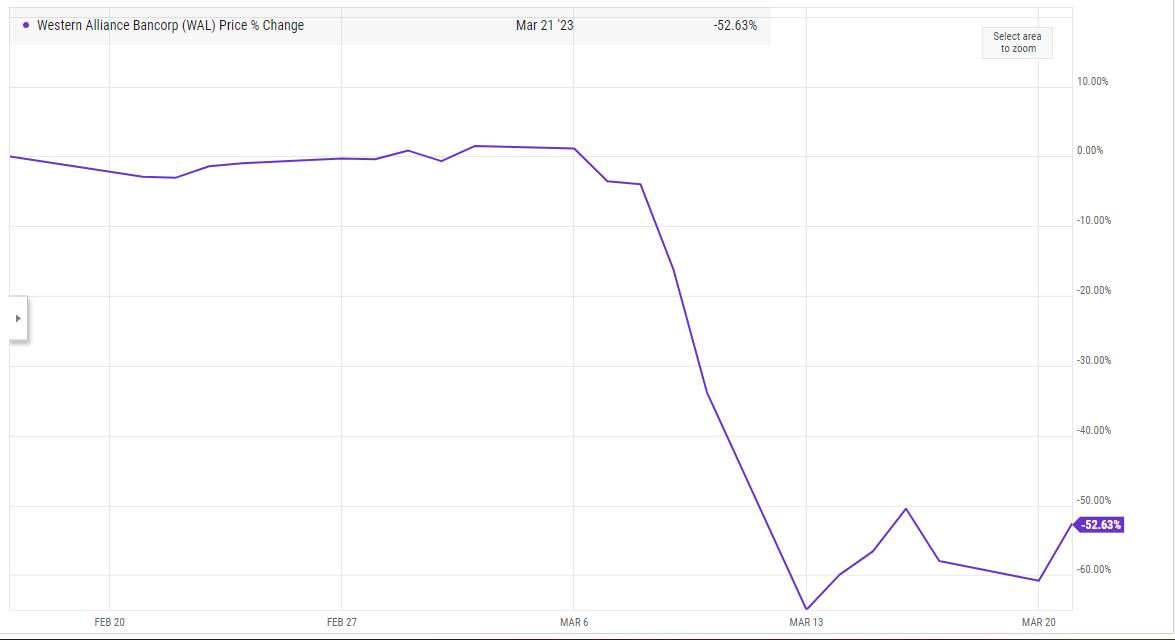 It’s not hard to build a bull case for WAL today. Regional bank fears have more than cut WAL’s stock in half over the past month.