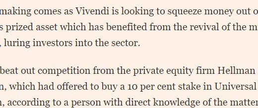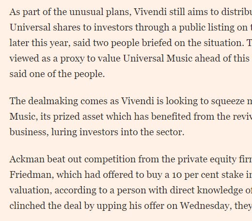 Anyway, I think I’m going to wrap this article up here. I’ll probably do another article in the near future building off why I think the UMG deal is a good transaction for everyone (and building off some of the knowledge Sleepwell Capital and Steven Wood dropped in our space last night!), but I wanted to get this out there since the deal is insanely complex and I’d love feedback if anyone is looking at / thinking about this differently.