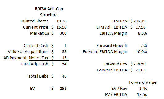 Still, despite the ostensibly high multiple, I think BREW remains interesting today. As I'll explain in this article, while I think the odds of AB buying out BREW have come down over the past two years, I think BREW's standalone value has likely improved. Let's start with the obvious: a trailing look at the financials fails to capture four important things about BREW.