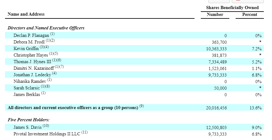 XL’s board has reasonable insider ownership and there are several financial people on the board (mainly from the SPAC sponsor). They have to know this is a lost cause as a public company at this point; maybe they’d support an activist that let them salvage a portion of their investment before they burn it all to zero on public company costs (note: the share counts include sponsor warrants that are hopelessly out of the money, so insider ownership isn’t quite this good….. but the Pivotal shares are founder’s shares with a pretty low cost basis, so maybe they’d be happy to just liquidate, take a profit, and move on). (table below from the 2021 proxy; I haven’t seen any insider selling buying or selling form 4s since but I could be off)