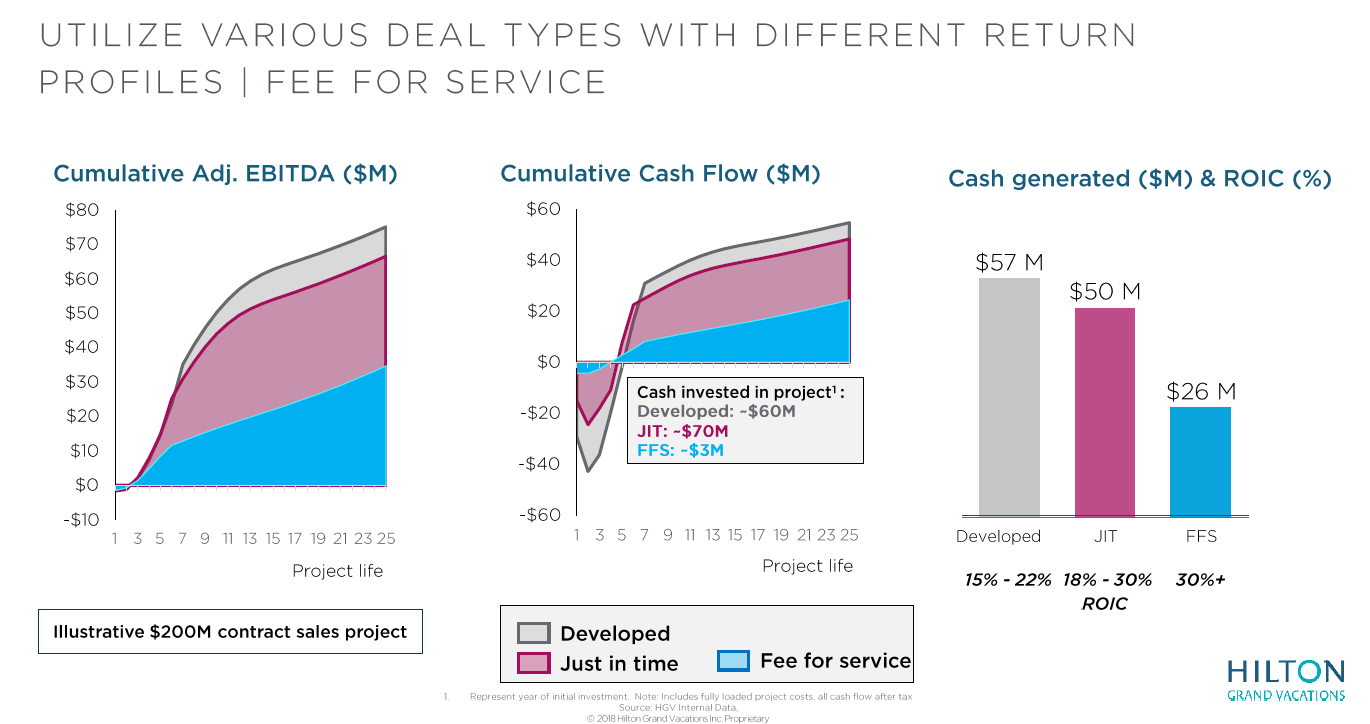 Personally, I wouldn't ever go out to investors and boast, "hey, the last time we made a big capex investment was right before the global financial crisis, and we think the time is right to do it again!", but that's just me. Anyway, the inventory investment is a concern, but I don't think it's a huge one. The industry has a reputation of making huge capex investments for growth (similar to the hotel lodging space), but these days most investment is done through capital efficient development deals, which requires much lower upfront cash investment from the timeshare company because their partner bears a lot of the development cost. Yes, there's still some risk here, but I think it's dramatically lower than most people think about when they think about new-build timeshares / hotels.