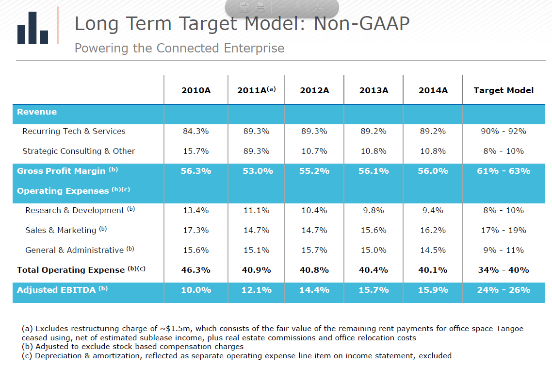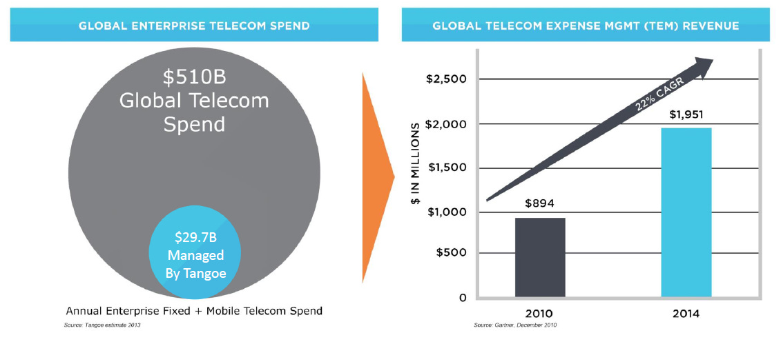 Tangoe manages >$30B in spend for their customers. (The chart below is from March 2015; they were over $30B by the second half of the year)