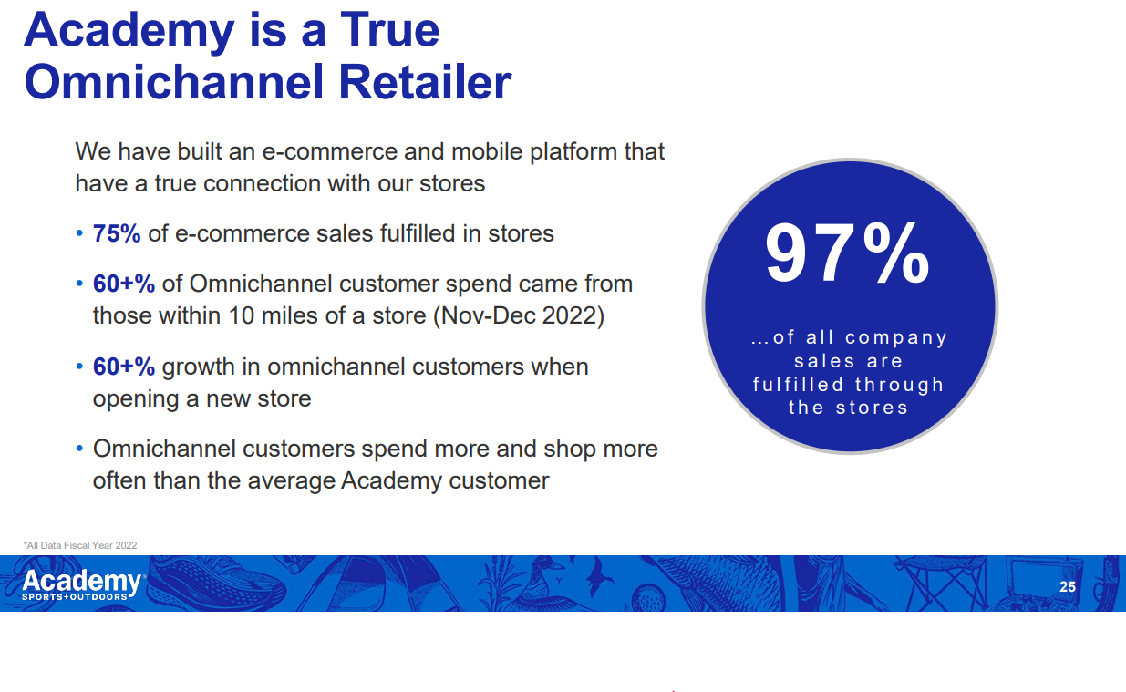 On the mom and pop side, ASO has three advantages I see. First, there’s the typical “ASO is much bigger, so they should get better pricing from suppliers” moat. That’s small but real. Second, a lot of ASO’s business is “omnichannel” now. A smaller competitor is not going to have the tech to invest into omnichannel. Third, a few years ago Nike made the strategic choice to stop selling to a lot of smaller accounts; it’s obviously really tough to have a sporting store without Nike. Academy made the cut, so Academy is often competing with mom and pops who don’t have the most important athletic brand.