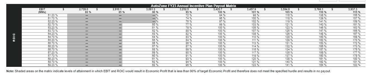 And AZO doesn’t just focus on ROIC publicly; their management bonus structure has an ROIC component to it (table below from their proxy)