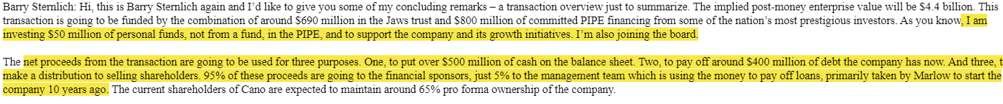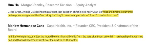 Well, first, CANO health went public through a SPAC. That’s a cause for concern, but not a smoking gun or anything… though I will note that Barry Sternlicht (the SPAC sponsor) called CANO’s CEO “the Elon Musk of healthcare” on the Despac call, which can be a massive point in CANO’s favor or detriment depending on how you look at Elon!