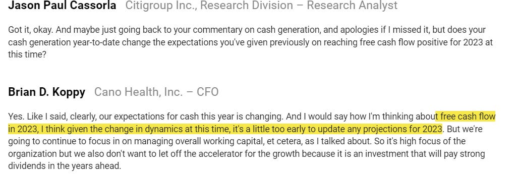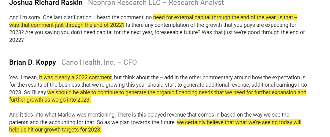 First, on CVS backing out…. again, the worry is that CVS backed out because they saw something in due diligence. Did they see that CANO’s cash burn is going towards uneconomical growth? Did they find something wrong in their quality of earnings / addbacks?