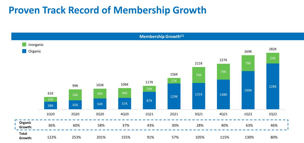 The third red flag is that CANO has grown rapidly. And they have not only grown rapidly…. but they have grown rapidly through acquisitions. Again, CANO is a value based healthcare provider. Rapid growth is always going to be a little scary for them, but rapid growth plus acquisitions….. well, there’s a lot of room for funkiness there! (slide below from their Q2’22 earnings)