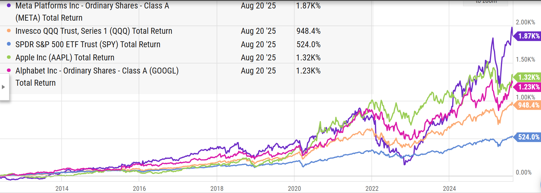 But you could use inflection investing to describe a lot of things. It actually fits really well with thematic investing / paradigm shifts. For example, consider mobile and think back to 2012. Facebook announced a deal to buy Instagram on April 9, and then IPO’d in May. I’m not saying this to say “you should have bought the facebook IPO”; I’m pointing this out because at that point it was clear that mobile was the future…. if you had that one insight and simply said “let me buy the companies that make mobile phones”, you had successfully identified an inflect. You could have bought Google or Apple and you’d have 12-13x’d your money over the next ~13 years (to today), smashing any relevant index.