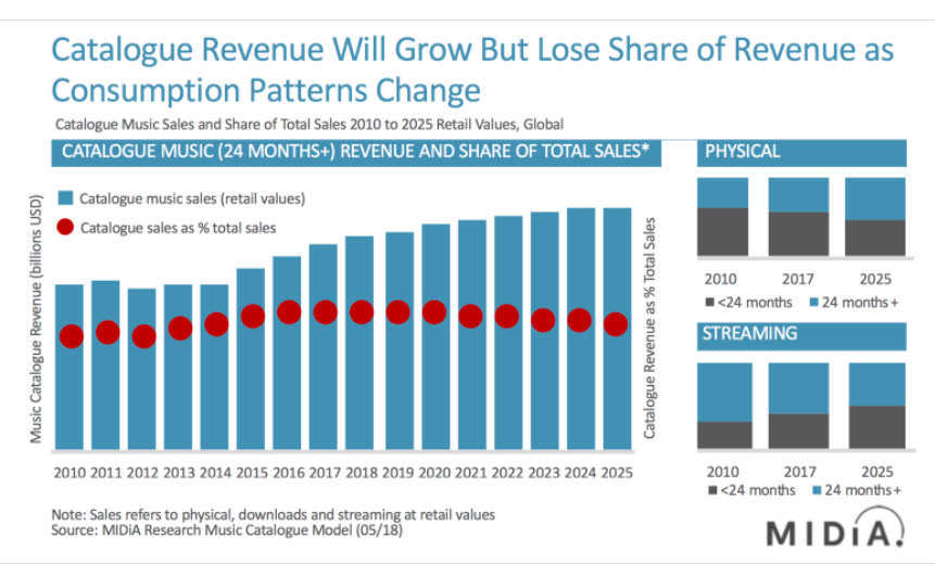 The music industry blog had a somewhat bearish take on catalogue a few years ago. I don’t agree with a lot in there, but it was a well thought out piece and I thought the chart below was pretty interesting! (They also had a quick piece on the PSTH / UMG deal if you’re interested!).