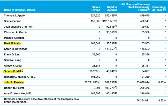 …. but they each have board seats, so they should be very well informed on the company’s outlook and strategy (Icahn’s son is on the board plus Steven Miller also works at Icahn and serves as a board member. Paulson himself is on the board).