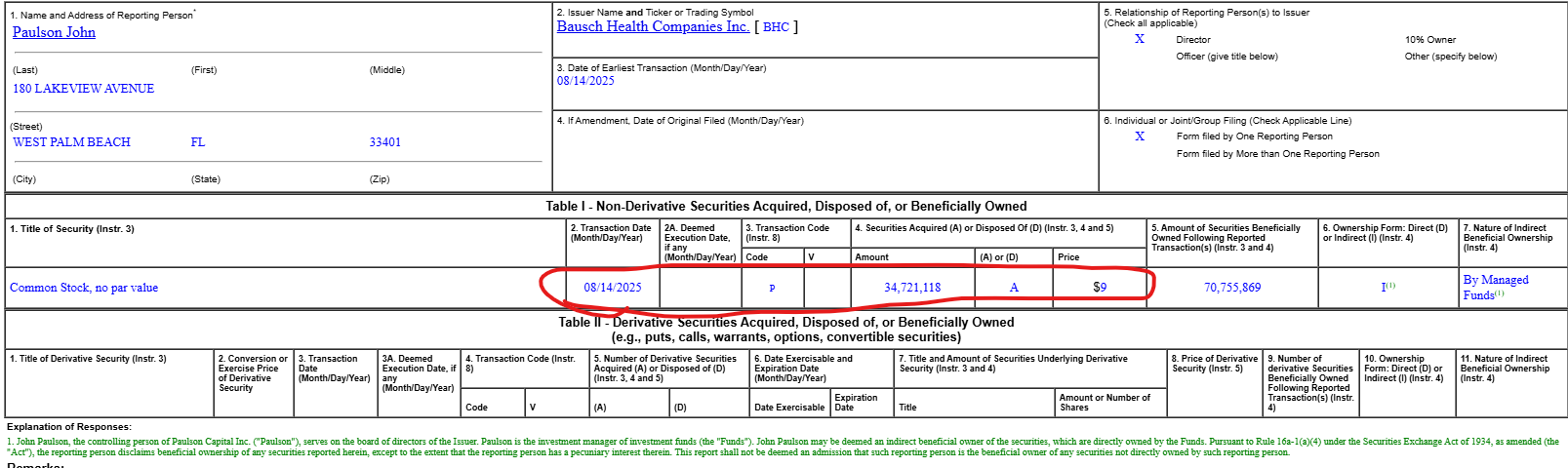 There are lots of possibilities here, but I think the most likely is that Icahn and Paulson both agree there’s a clear path to large value realization at BHC (even if the market is skeptical!). Remember, BHC shopped their BLCO stake earlier this year but eventually pulled the sale; today, BLCO trades for ~$14/share. Maybe Paulson and Icahn both know there was feverish demand for BLCO at >$20/share from buyers, and that the company is planning on running another sale process later this year. So, with line of sight to that value creation, Icahn could go to Paulson and say something like, “BHC is going to work well. You know it, I know it, our board knows it….. but I need liquidity elsewhere in the portfolio, so pay up to take me out and we both know that this will work well for you.”