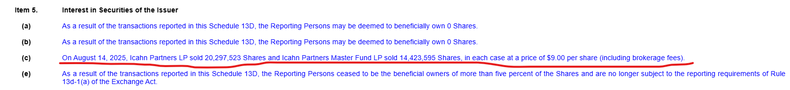 I wrote most of this Friday morning; the company published a PR detailing the trade and that the Icahn representatives are resigning from the board Friday afternoon. Don’t think that changes anything I’ve written, but just noting in case there’s anything I write in this that sounds a little different with the clarity of that PR!