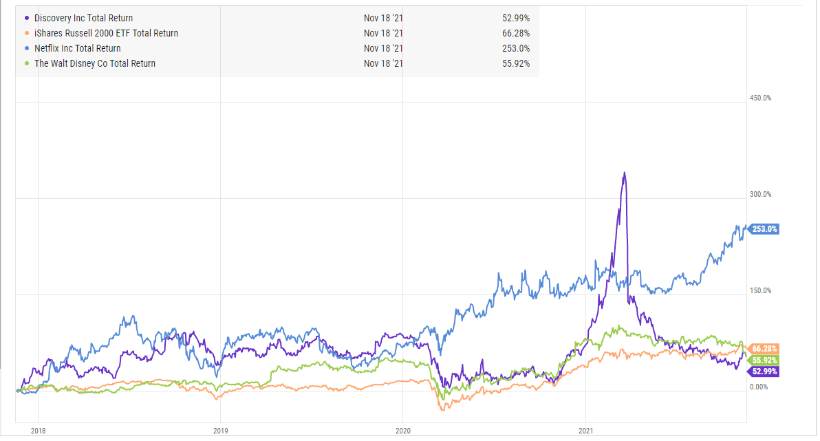 I will say one more thing to throw a little cold water on the QRTEA bulls: the way Malone talks about QRTEA now reminds me a little of how he talked about Discovery after the Scripps deal. DISCA’s stock has done fine since then, but it’s not exactly a screaming homerun (it’s trailed the index and relevant peers).