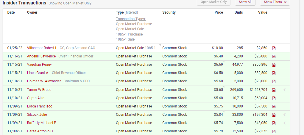 Which just feels wrong to me. Again, you had a very reputable news outlet (Reuters) reporting a bid at a big premium and that multiple bidders were involved after the company had run a process. Insiders seemed reasonably aligned here; the company had tried to sell themselves a few years ago (that deal was blocked on national security concerns), suggesting the board was open to a sale, and insiders across the board had just bought a decent amount of stock on the open market in November.