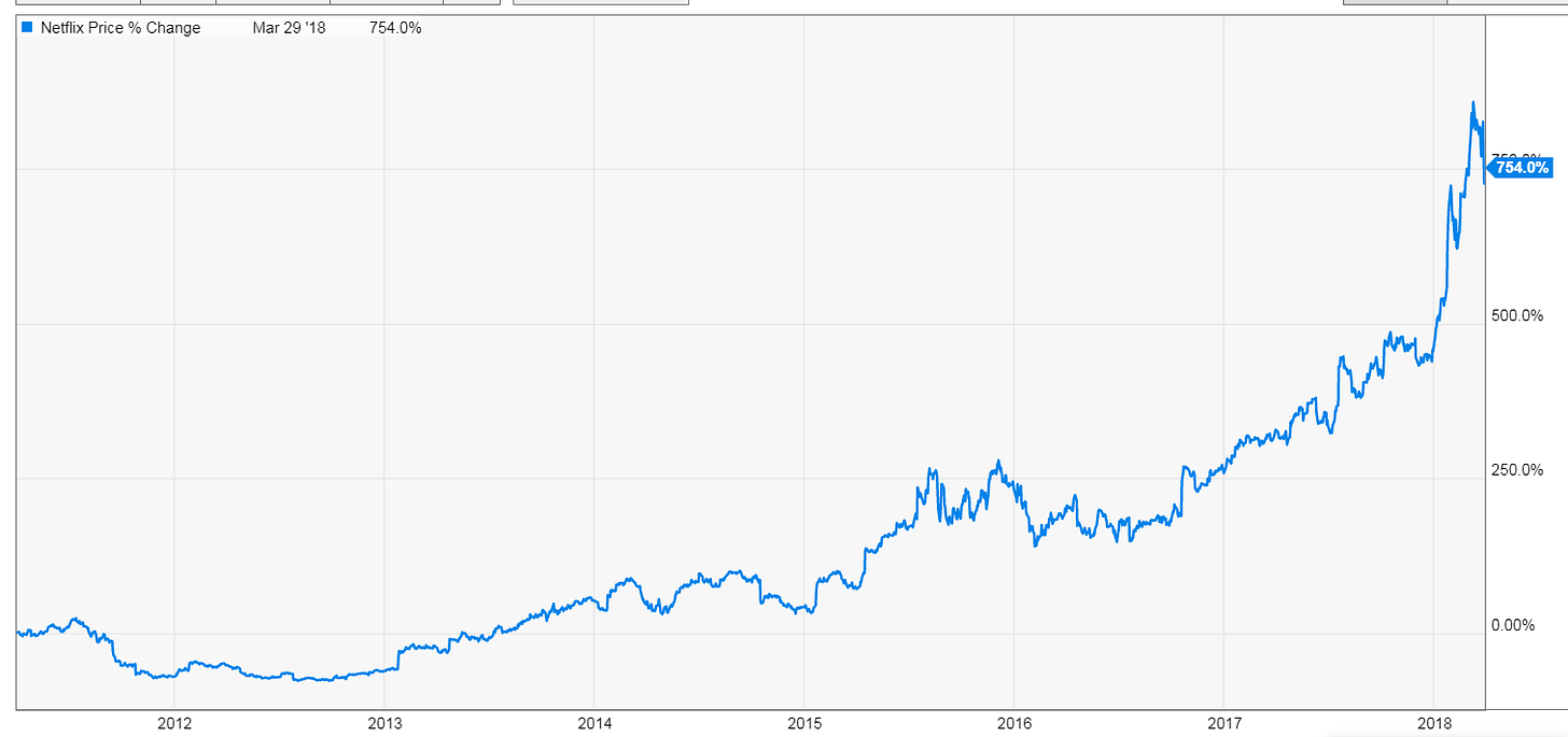 Anyway, hindsight’s 20/20, and I'm certainly not linking to the article to call the author out specifically. I'll openly admit that when I read the article I was in open agreement with it, and at the time that type of “it’s crazy expensive” thinking held a lot of weight with me (I was just starting as an investor, and I remember being on some email threads with other "value" investors that basically talked about shorting the over-priced and over-hyped Amazon and waiting for Walmart to kill them. Amazon’s share price since then looks a lot like Netflix).