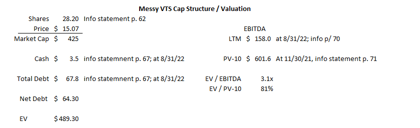 Let’s start with the basics. You can and should review the VTS info statement here. I’ve pulled out a few key items from the info statement in the (very sloppily and messily thrown together) chart below to give a baseline for how big the company is and how they’re valued.