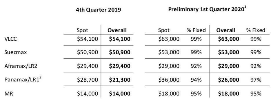 Anyway, ignoring the “panicked storage” trade, right now contango is driving exploding rates for tankers. The slide below is from INSW’s April investor deck and shows average rates for Q4’19 and Q1’20; currently, rates appear to be substantially higher than the Q1’20 rates (here’s reuters noting that VLCCs peaked at $235k/day and were trading at ~$125k/day yesterday).