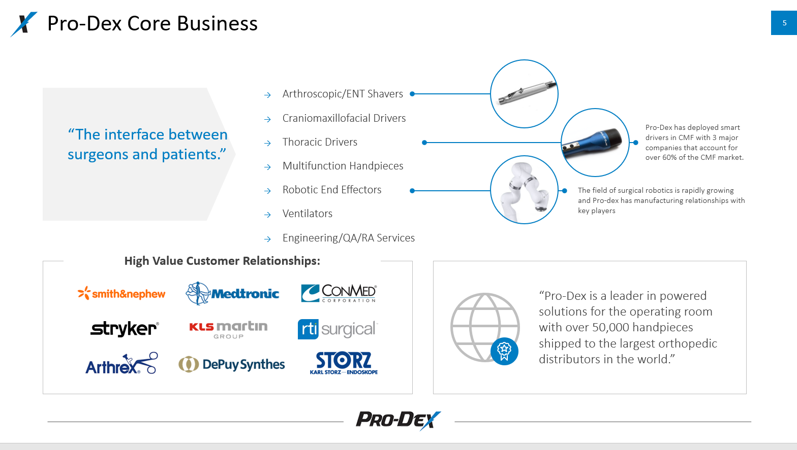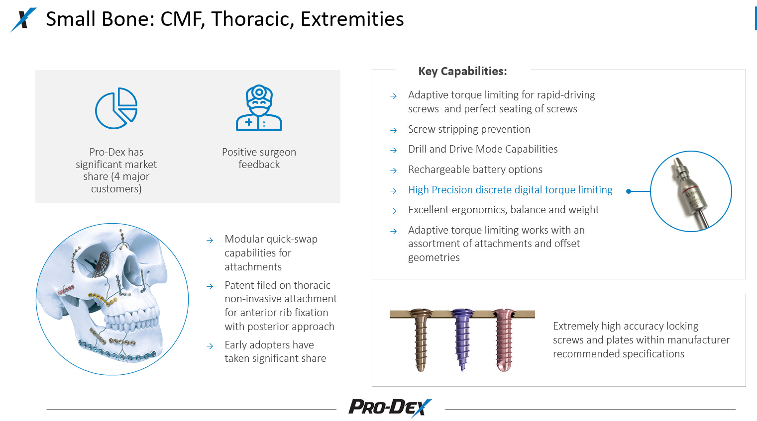 Pro-Dex designs and manufactures surgical drivers and shavers.