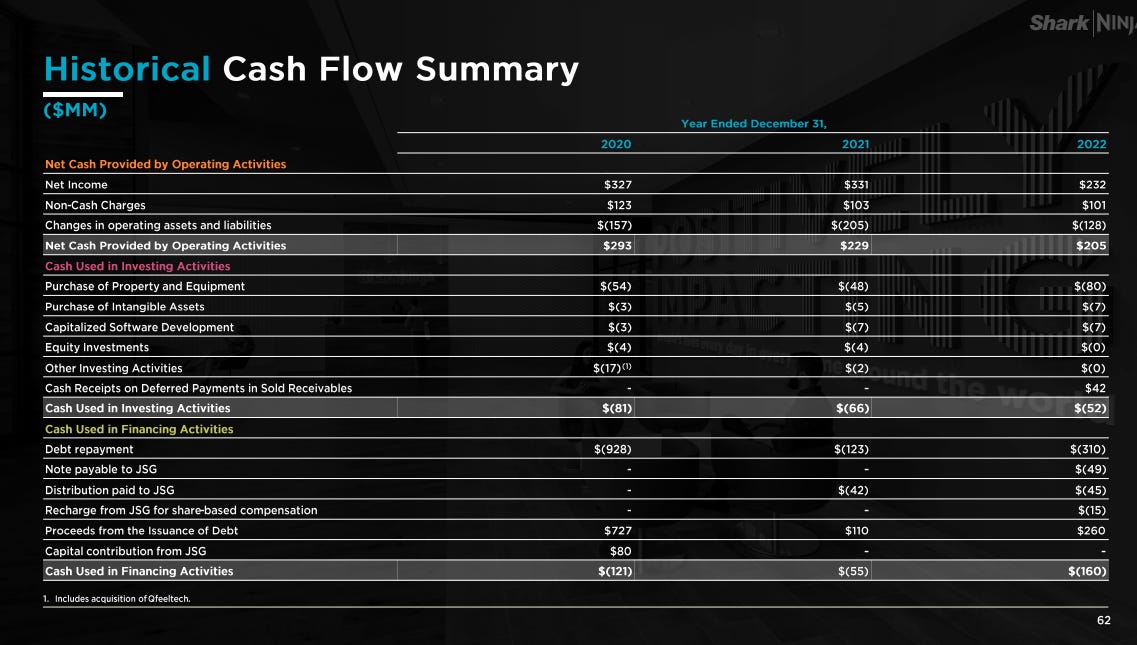 Speaking of growth, it’s worth noting that SN is guiding to ~$130m in capex this year. That’s up from ~$80m in 2022 and ~$50m in 2021 and 2020 (see p. ~104 or the chart below). That’s a big increase; the only thing I’ve seen the company say about it is in their Q2 call they said the capex was "to support investments in new product launches and technology.” Obviously a little speculative, but it’s possible the company is planning a massive new launch or multiple new product introductions and the capex is them getting in front of it.