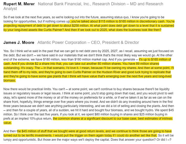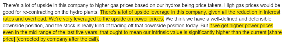 Just to sum all of this up: however you cut it, AT looks cheap at these levels. I think the buyer is getting a steal, and the call option on power prices makes AT look even cheaper. Given that combo, I think there's a chance we could see a topping bid here.