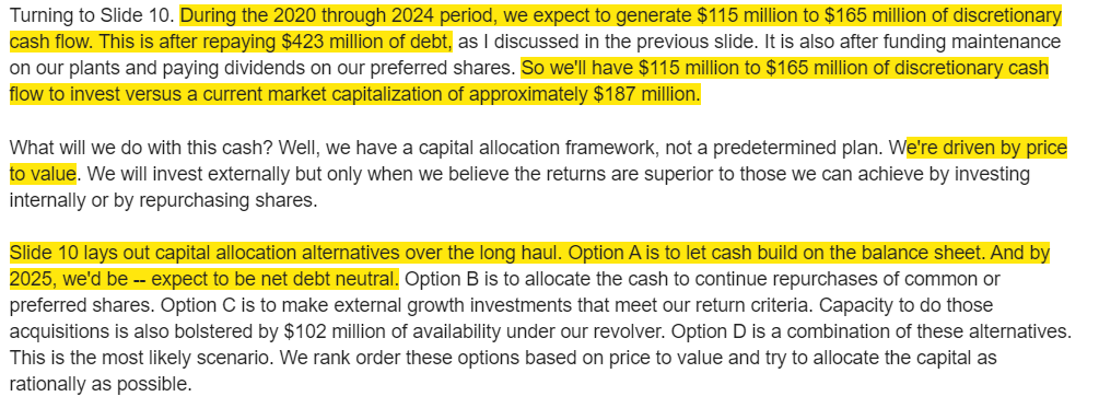And while management would say the premium is huge compared to their prior stock price, it's honestly not big in the grand scheme of AT's earnings power. Again, AT is projecting ~$180m in EBITDA and ~$100m in cash flow for 2020; the 50% share price premium the company keeps highlighting equates to ~$120m in market cap, or around one turn of annual equity cash flow. Again, not huge when you look at the overall picture of the company's contracted earnings and ability to go net debt free by 2025.