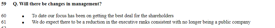 This bid is a huge premium to our share price, and we've engaged in multiple deal talks over the past few years and this is the best deal / bid we've gotten.