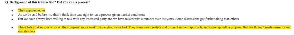Why would management suddenly change their tune and sell now? Maybe they got sick of yelling into the void that their shares were undervalued. Maybe they really believe that this offer is fair for shareholders. Either or both are certainly possible.