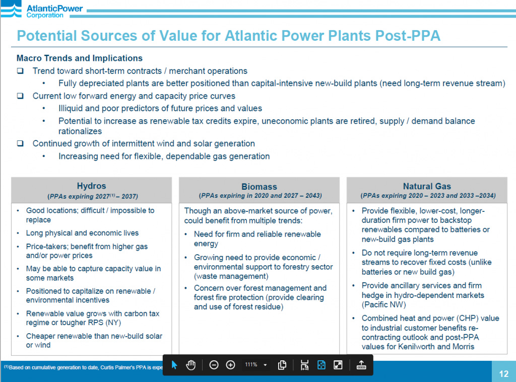 A lot of our earnings come from long lived PPAs (purchase power agreements) that will expire in the next few years; earnings will likely drop significantly as those contracts expire as they were struck when power prices were materially higher. By selling now, we lock in value for our shareholders and shift recontracting risk to someone else.
