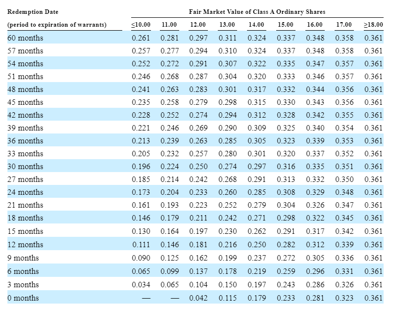 However, the most likely and probably most logical way to do this would be for CLOV to call their warrants. CLOV has ~27.6m public warrants outstanding. They can call the warrants if their share price holds >$18/share for ~20 days. Alternatively, they can call them at any time by offering to redeem them according to the table below (from ~p. 130 of IPOC’s prospectus). Why does this matter? If CLOV’s stock is >$18/share and they call their warrants, warrant holders are better off exercising their warrants and then selling the stock (i.e. paying $11.50/share to buy a share of stock from CLOV and then selling that share in the open market). An example might show this best: the warrants are struck at $11.50. If the stock is at $21.50 and the company calls it, the warrants would be worth ~$7.77/warrant in an exchange (0.361 * $21.50); alternatively, if you exercised the warrant and immediately sold, a warrant holder would make $10/warrant. So Chamath / CLOV could announce a warrant exchange tonight, and assuming all warrantholders are rational and redeem instead of exchange, the company would instantly raise >$300m from their warrant holders. Note that the timing of calling CLOV’s warrants now would somewhat match up with Chamath’s history; SPCE called their warrants in March 2020, ~6 months after they completed their merger.