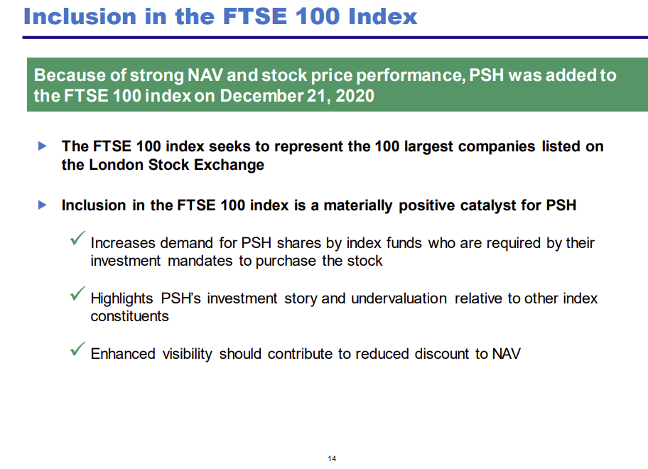 Why do I think some type of remainco / PSH deal could create value? PSH decided to list in London because of the U.S. rules around publicly traded hedge funds (in particular, I believe the rules on paying an incentive fee in a publicly traded company are pretty onerous); however, it’s almost unquestionable that PSH would trade much better as a U.S. listed company (its a largely domestic portfolio, so it has a more natural shareholder base in the U.S., and as a foreign company domestic investors in PSH currently pay the PFIC tax).