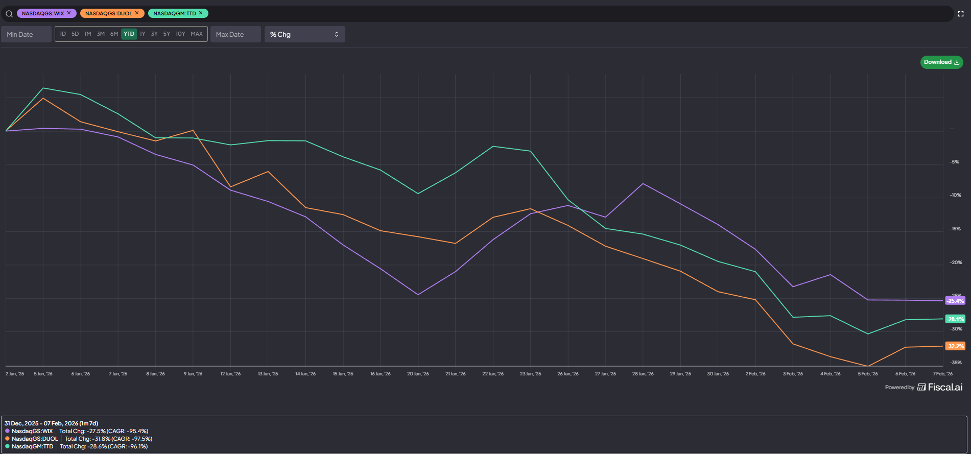 It’s hard to think of three businesses more different than WIX (website building for small businesses), DUOL (“learning7” a new language for consumers), and TTD (DSP for advertising). Will all of them be affected by AI? Absolutely…. but the three have traded in virtual lockstep so far this year. It’s hard to imagine that AI is going to impact each of them equally, and the market is realizing that AI is going to impact each of them equally incrementally negative every day.