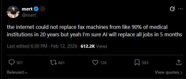 Anyway, I centered my February ramblings around the SaaSpocalypse…. but I wanted to go further / ramble more and write something about the SaaS selloff because writing helps me clear my head / think, and I find throwing some random thoughts into the world often encourages good / interesting feedback and inbounds.