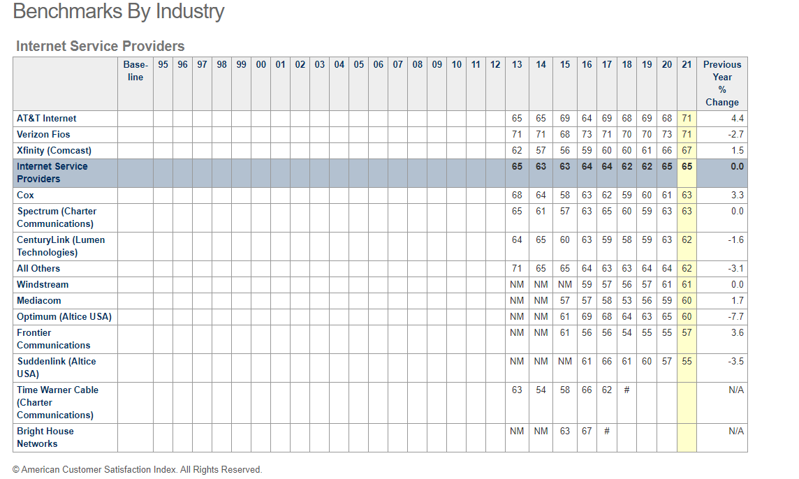 So I’ve just kind of been thinking about that chart recently. How meaningful is it? How meaningful is customer satisfaction? All else equal, sure you want customer satisfaction to be higher. But can you really read anything into one company coming a little above or below industry average? I mean, AT&T is at the top, and their stock has underperformed the indexes pretty significantly for years. Yes, I know that a lot more goes into T’s stock price than just customer satisfaction, but if you’re getting super high marks in customer service because you’re spending a fortune on customer service or underpricing your service or something…. well, you’re not really creating value, are you? And if you’re towards the bottom but it’s because you can operate with a cost structure that is magnitudes lower than peers, maybe it’s the right strategy?