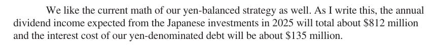 The Japanese investments have been great. No doubt about it. But framing the Japanese investments as a positive carry trade like that seemed a little off; I’d expect someone on Twitter who was trying to get a mass following of retail dividend investors to make that framing, not Buffett.