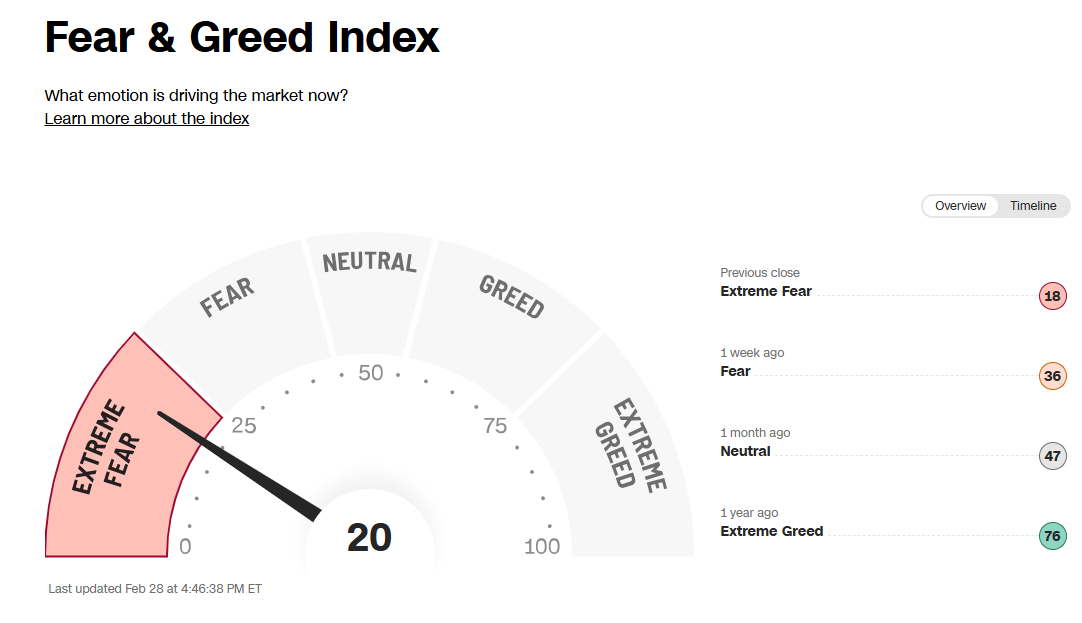 It’s not a perfect indicator, but I like to use the CNN “Fear & Greed” Index just to quickly quantify where the markets are.