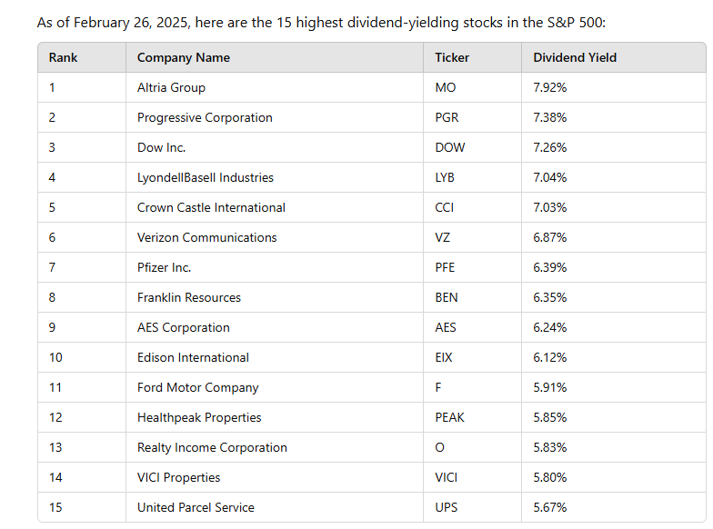 Say Buffett decided to take $100m of equity and lever it up with $100m of margin loans from IBKR (obviously none of this is financial advice; I’m just walking through a hypothetical). So he could use that margin to lever up the $100m and buy $200m of the top yielding stocks in the S&P; I had ChatGPT make me that list: