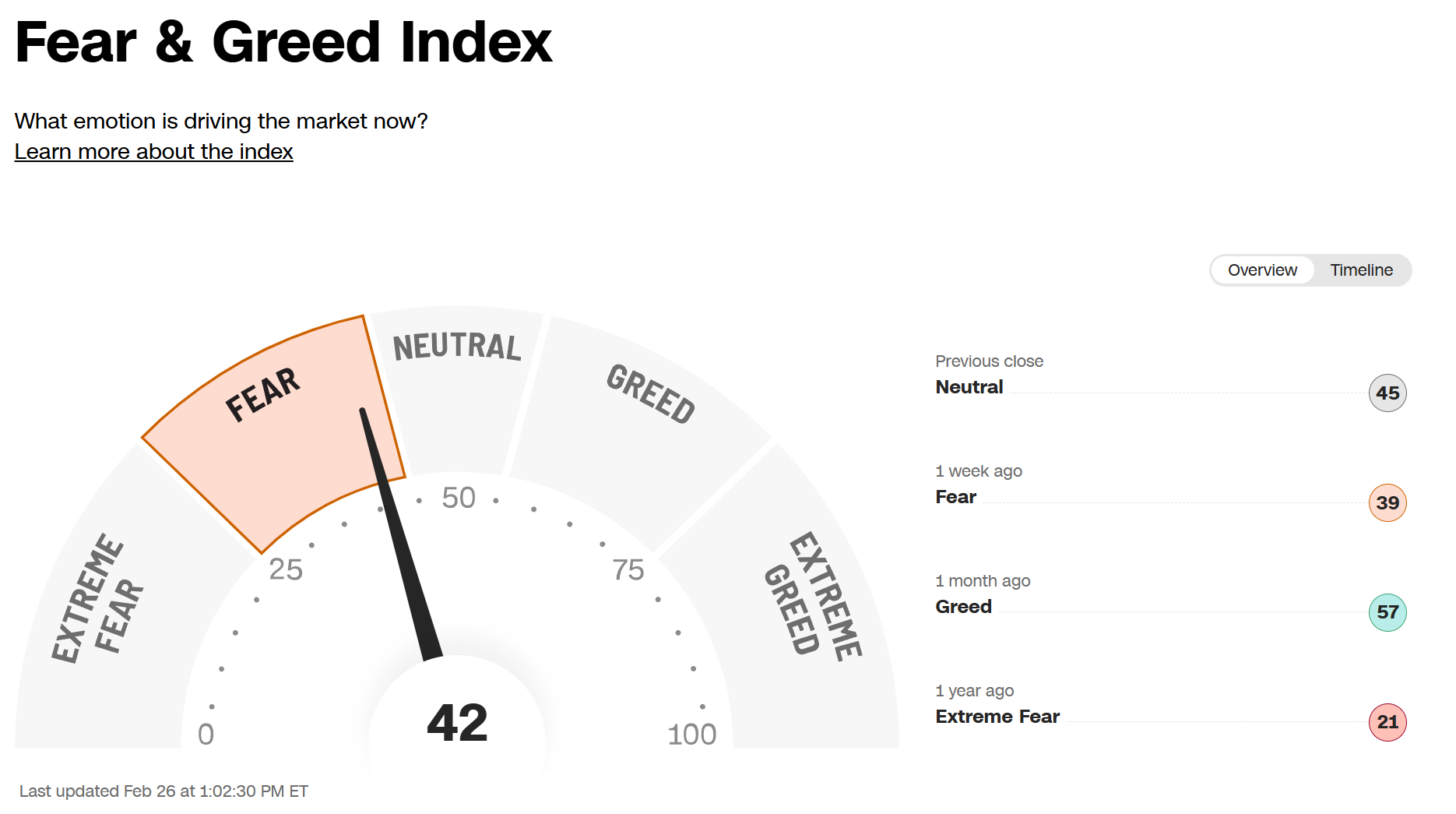 It’s not a perfect indicator, but I like to use the CNN “Fear & Greed” Index just to quickly quantify where the markets are.