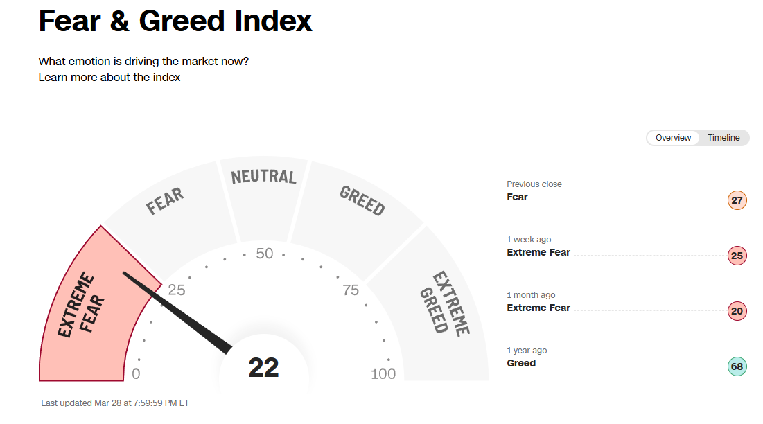 It’s not a perfect indicator, but I like to use the CNN “Fear & Greed” Index just to quickly quantify where the markets are.