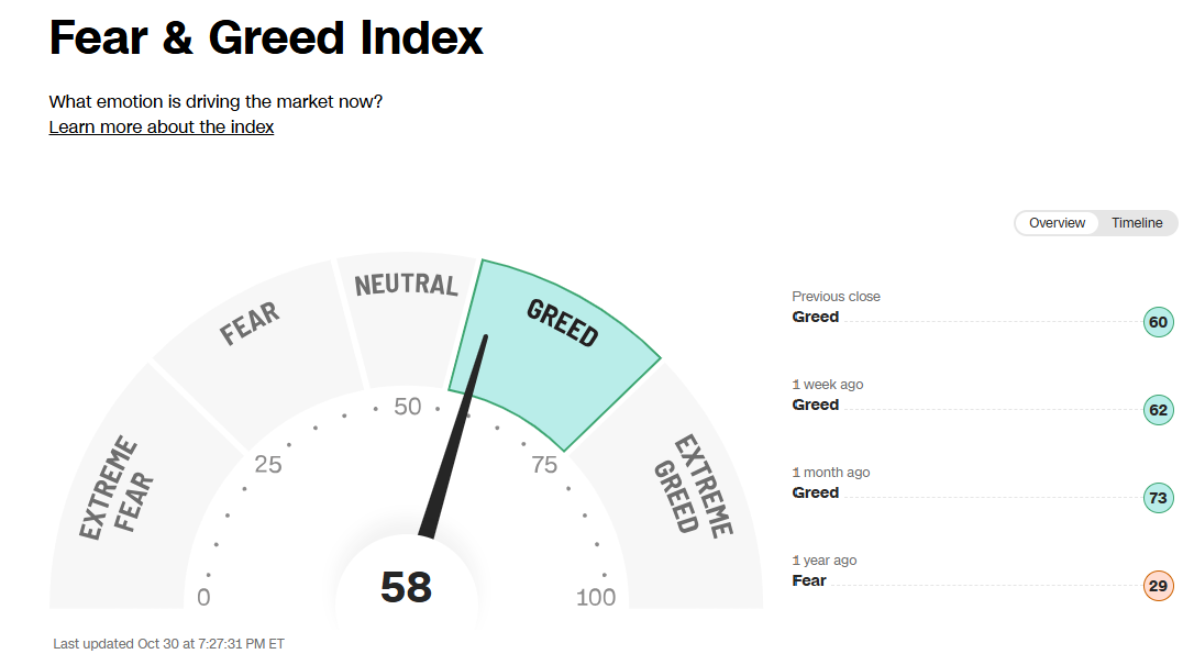 It’s not a perfect indicator, but I like to use the CNN “Fear & Greed” Index just to quickly quantify where the markets are.