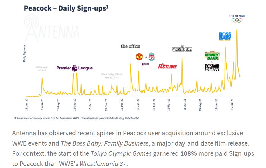 This Antenna article was really interesting around the Olympic’s driving Peacock sign ups. It included the chart / screenshot below: