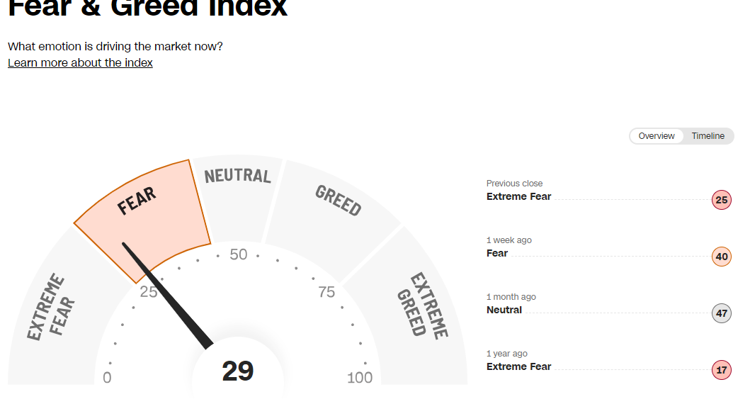 And the “fear & greed” index is pushing solidly to “fear” levels……